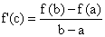 Geometricaly, this is the statement that the secant to the curve f between a and b is parallel to some tangent line between them.